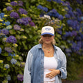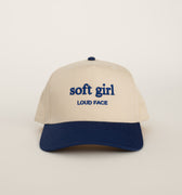 This one is for all my soft girlies. This ivory and blue trucker hat features a two tone cap with royal blue embroidery. Not only is it super cute, but also super comfortable with its adjustable fit, pre-curved brim, and mid profile. Perfect for all you soft girlies out there!